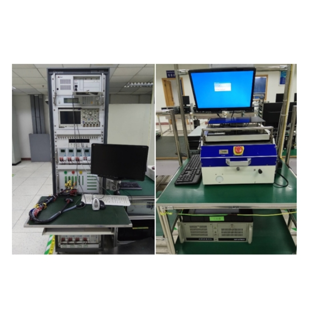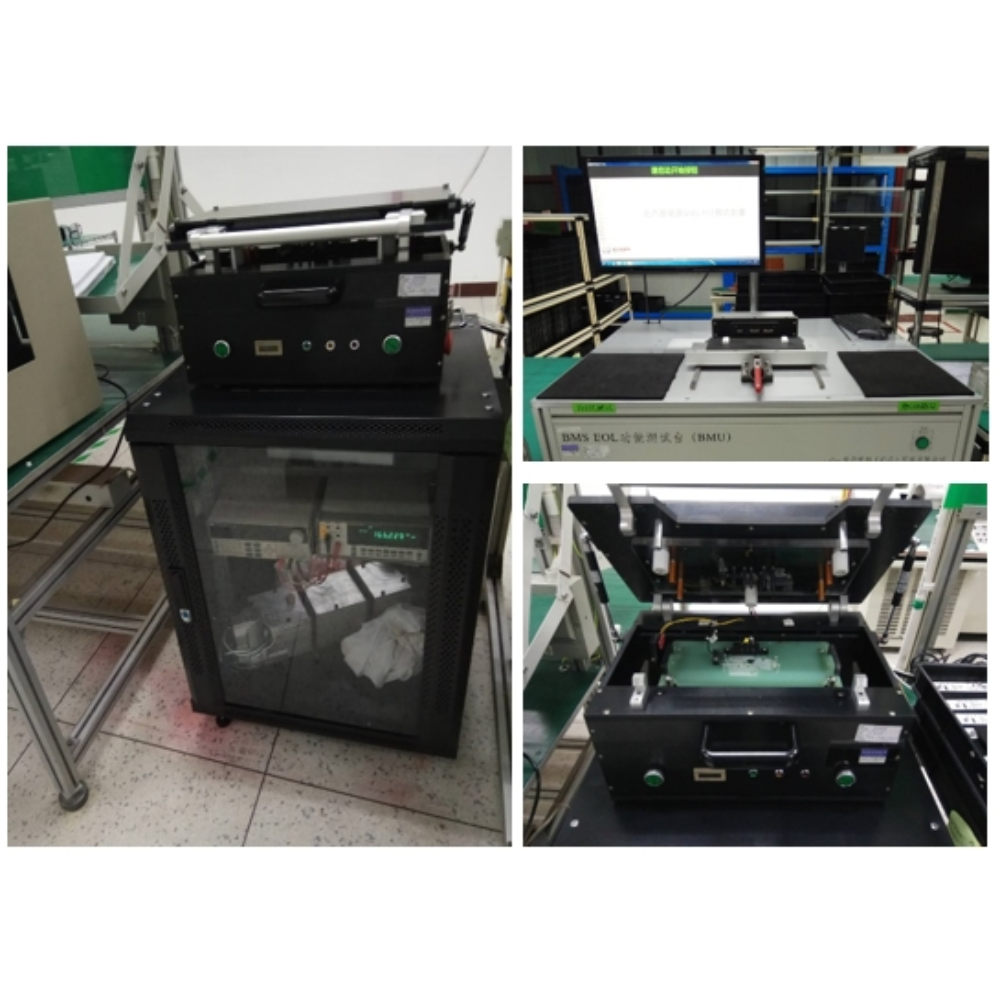 Product testing involves voltage, frequency, electronic load, CAN bus communication, and other tests